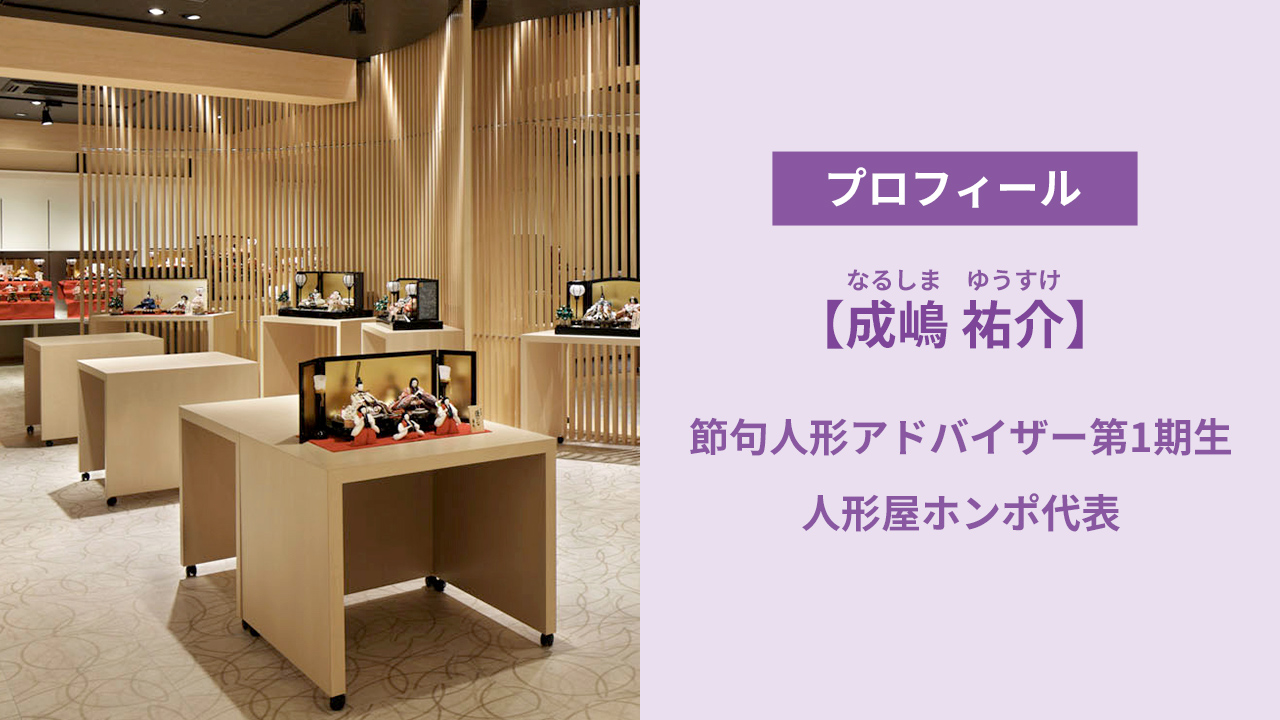 成嶋祐介は、創業1925年の節句人形専門店「人形屋ホンポ」を運営する株式会社成島の代表取締役です。
