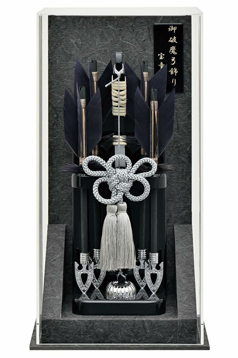 破魔弓は、様々な厄から身を守るための飾りとして江戸時代初期から男の子が生まれた家に、子供の健やかな成長を願って贈る習慣があります。