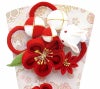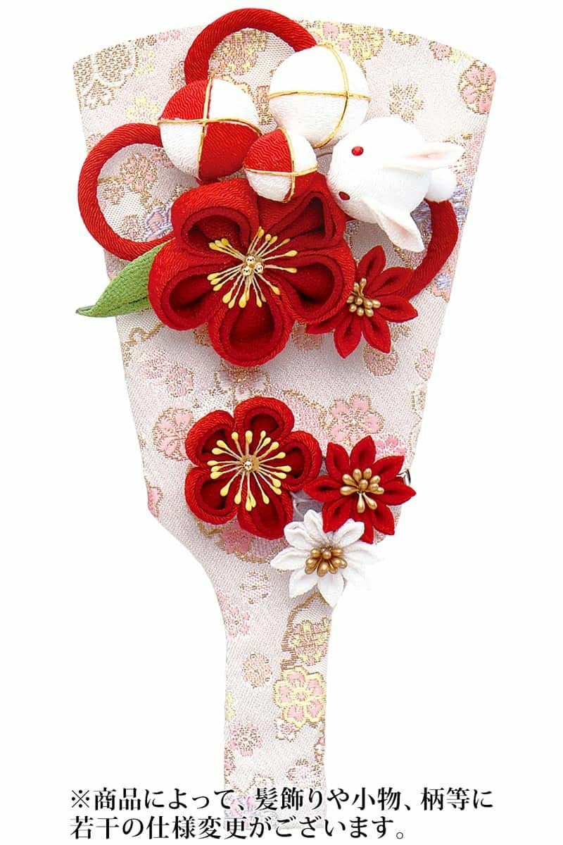おめでたいお節句にふさわしい紅白のお花に、飛躍の兎と円満の鞠を合わせた、縁起の良いデザインとなっております。