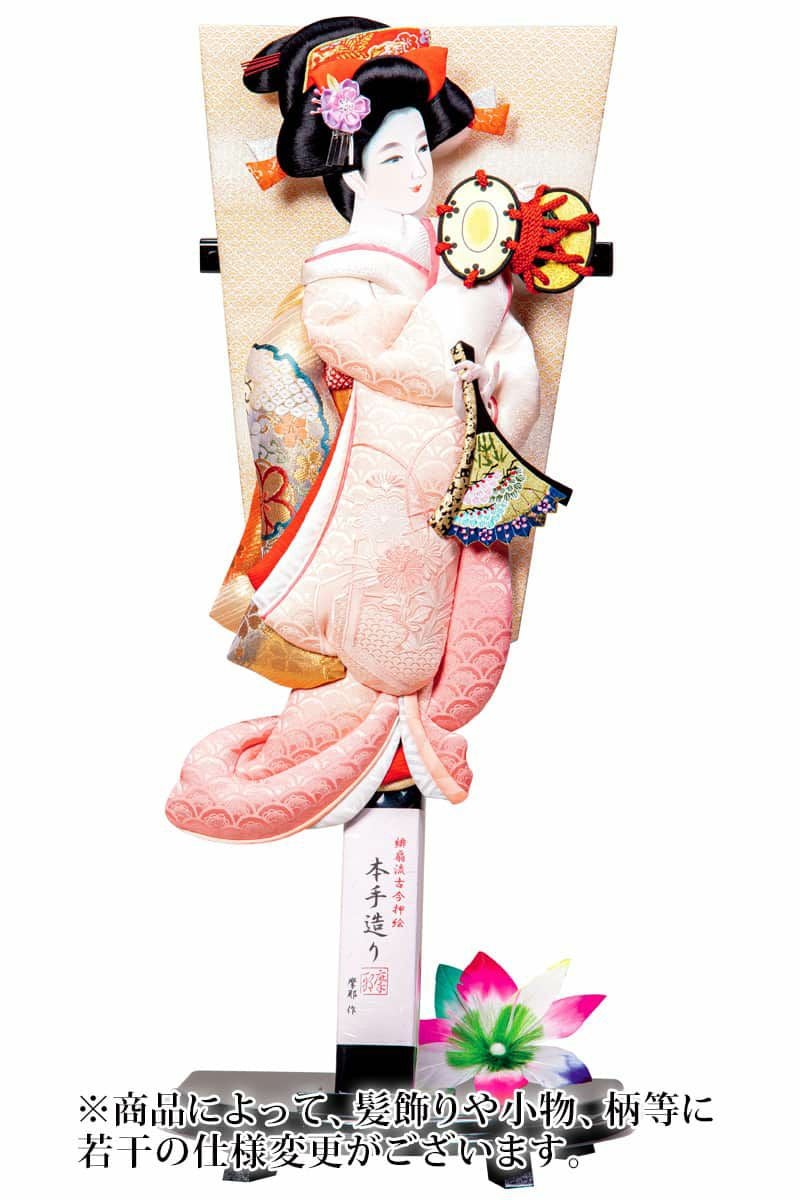 また、同一材料を使用しておりますが、各サイズに一番合ったバランスで製作しているため、縮尺やお顔の向き、細部(かんざし・帯など)の仕様が若干変わる場合がありますので、予めご了承ください。