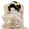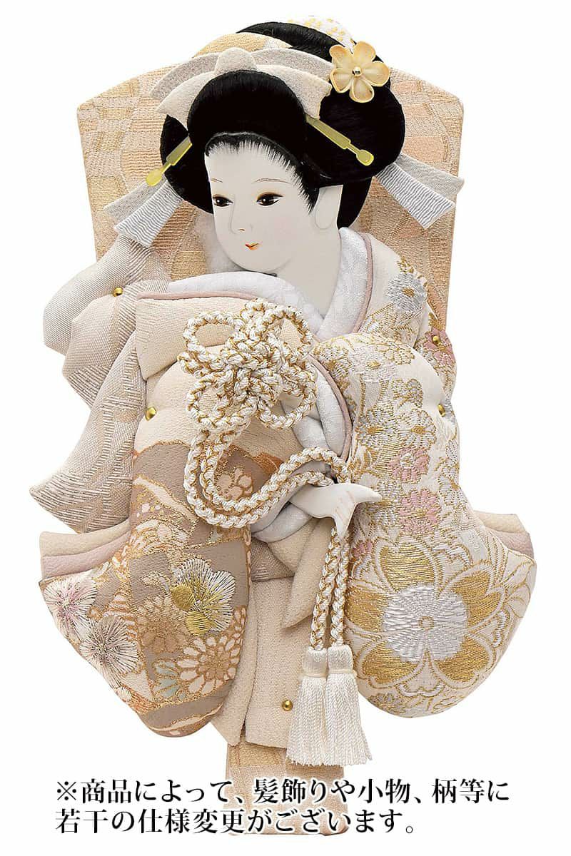 また、同一材料を使用しておりますが、各サイズに一番合ったバランスで製作しているため、縮尺やお顔の向き、細部(かんざし・帯など)の仕様が若干変わる場合がありますので、予めご了承ください。