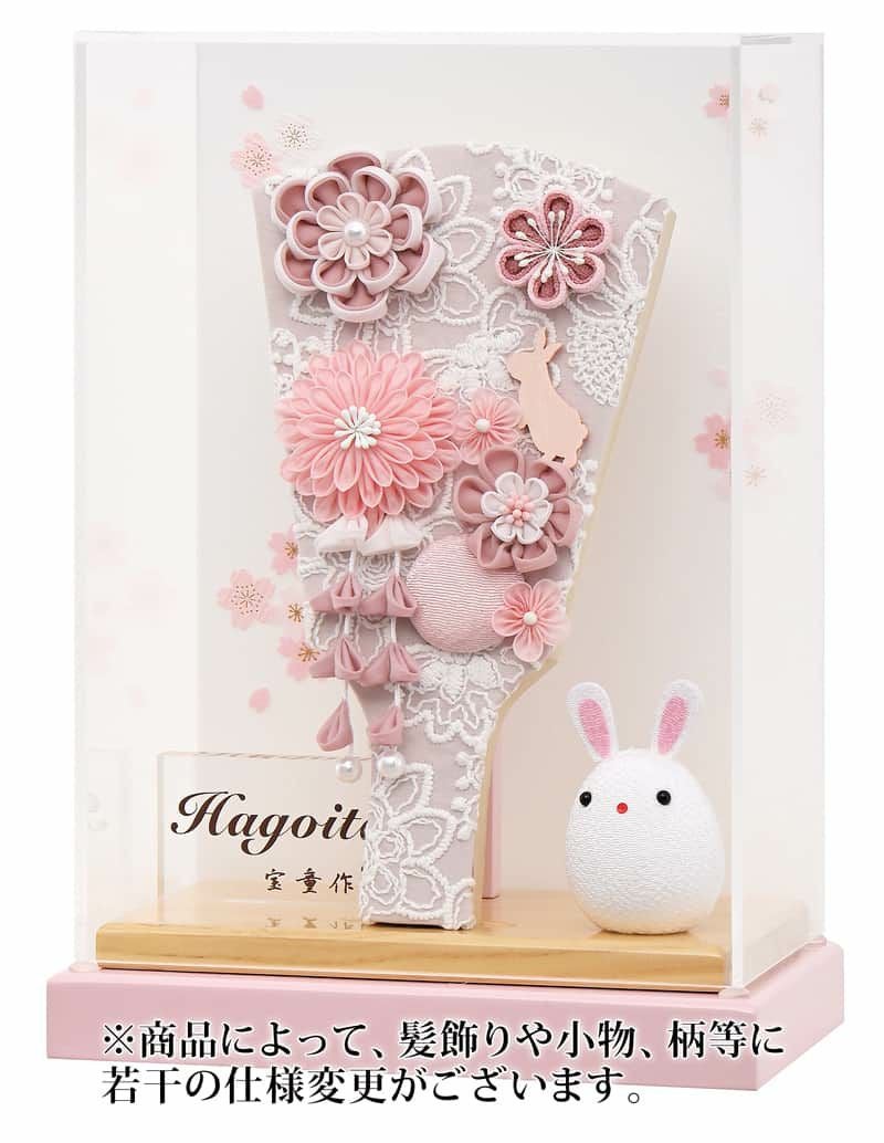 柱のないすっきりとしたデザインが魅力のアクリルケースに、可憐な羽子板を合わせました。
