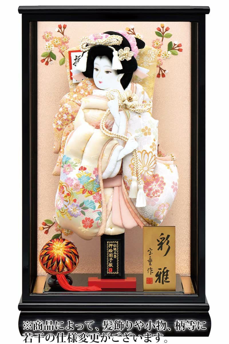 また、同一材料を使用しておりますが、各サイズに一番合ったバランスで製作しているため、縮尺やお顔の向き、細部(かんざし・帯など)の仕様が若干変わる場合がありますので、予めご了承ください。