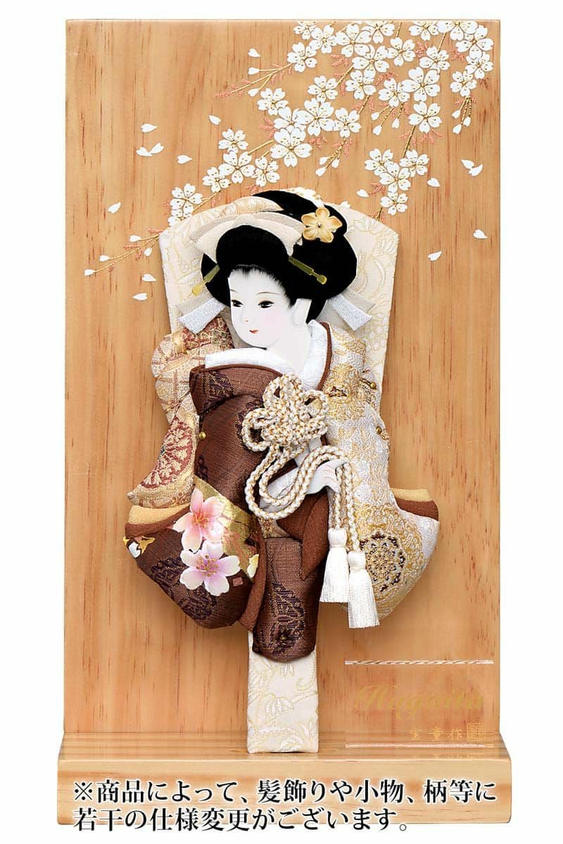 また、同一材料を使用しておりますが、各サイズに一番合ったバランスで製作しているため、縮尺やお顔の向き、細部(かんざし・帯など)の仕様が若干変わる場合がありますので、予めご了承ください。