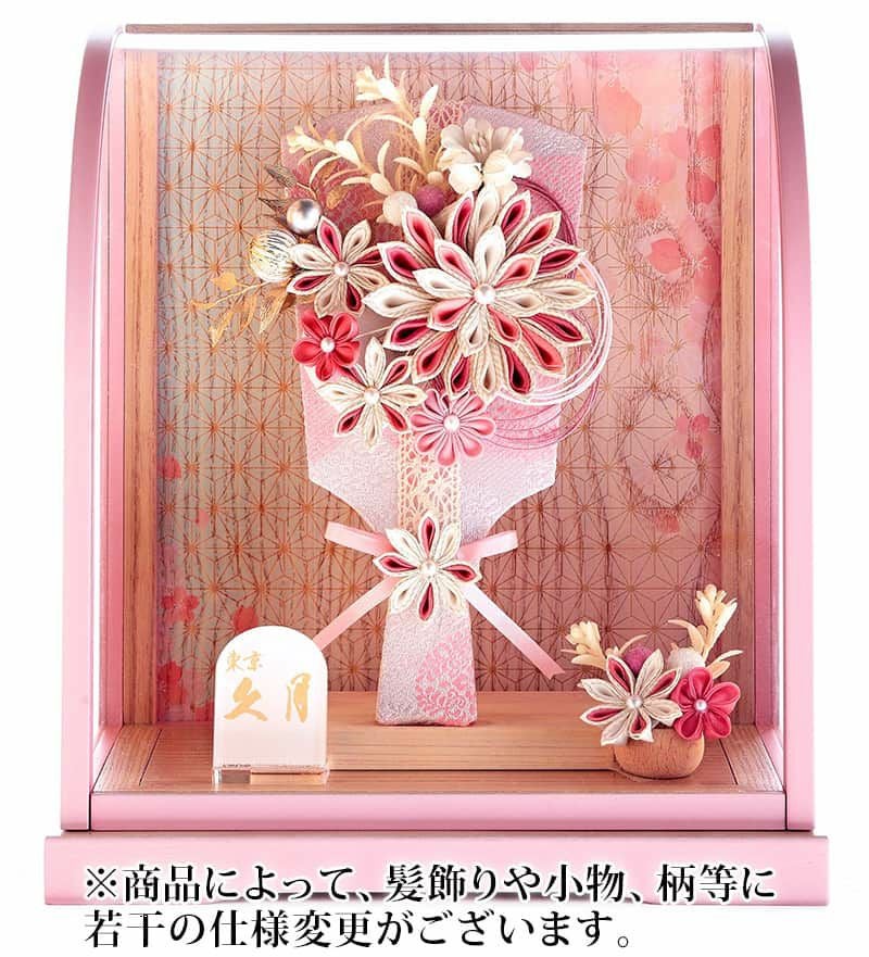【送料無料】最安値に挑戦!2026年度新作 正月物 羽子板 久月 ケース飾り 夢風 つまみ細工 白桃 7号 ピンク塗木目アクリルケース 【2026年度新作】 h081-k-16660