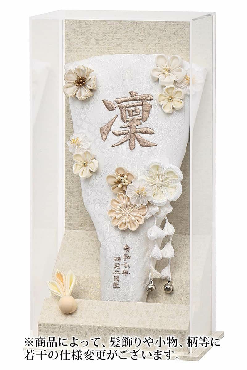 【送料無料】最安値に挑戦!2026年度新作 正月物 羽子板 ケース飾り いをり(白)羽子板 7号 あやか 白金 アクリルケース モカ糸刺繍 名前+生年月日入れ 代金込み 【2026年度新作】 h081-mm-hg2608-7