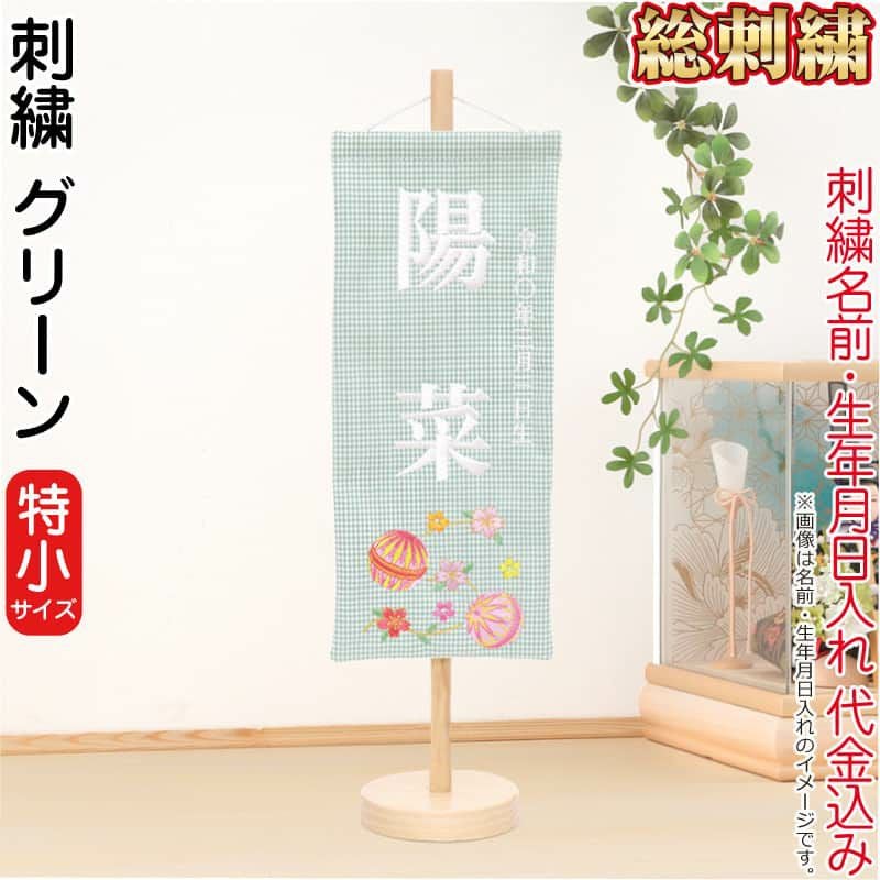 【送料無料】最安値に挑戦!2026年度新作 雛人形 雛人形 ひな人形 名前旗 女の子 グリーン (特小) 刺繍 名前+生年月日入れ 代金込み スタンド付 【2026年度新作】 h083-fz-3610-30-017