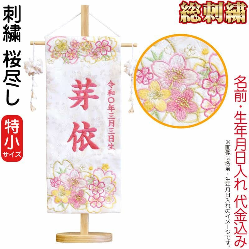 【送料無料】最安値に挑戦!2026年度新作 雛人形 雛人形 ひな人形 名前旗 女の子 桜尽し (特小) 刺繍 名前+生年月日入れ 代金込み スタンド付 【2026年度新作】 h083-fz-3610-30-028f