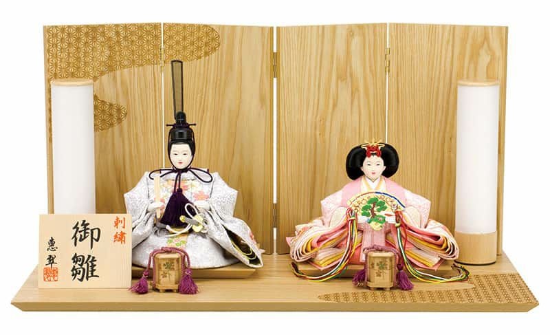 典雅な趣と確かな仕立てが魅力の恵翠作の親王飾りです。