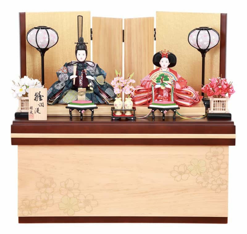 桜の花が品よく描かれた飾り台は、収納箱としてもお使いいただけます。お節句後にはお人形やお道具をすっきりとしまう事ができ、機能性にも優れています。