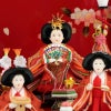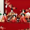 つやの美しい、鮮やかな色の飾り台が目をひくお雛様です。