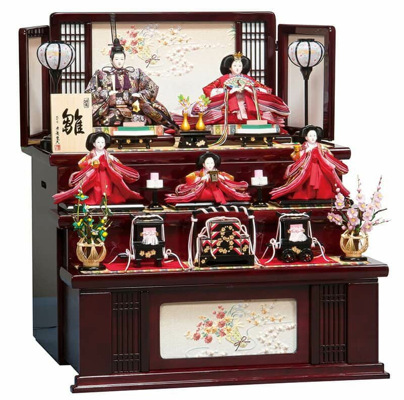 飾り映え抜群の三段飾りは引き出し式のたっぷり収納となっており、オフシーズンには中にお人形やお道具がしまえる優れものです。