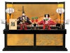 左右の紅白梅はモダンな仕立てですっきりとしたデザインですので、人形、屏風、飾り台と細部までこだわったお作りと良く調和しております。