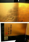 煌びやかな光沢を放つ飾り台と屏風は、金沢箔を用いて本金手描き蒔絵を施した雛具師 秀叡作の逸品です。琳派のデザインを思わせる松葉の図案が、たいへん優雅で見とれてしまうほど美しく仕上がりました。