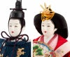 雲立涌の地紋の上に梅や牡丹の花々がキラキラと輝く親王の衣裳は、色違いの共柄で仕立てられ、将来出会う大切な人といつまでも仲睦まじくいられますように…との願いが込められています。