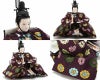 桜と短冊の金彩蒔絵を施した、赤のぼかしが華やかな飾り台に、亀甲に吉祥華の文様が美しい親王を合わせました。
