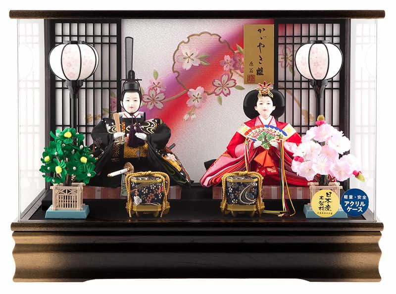 栓欅のケースを、高級感ある黒塗り金ボカシで仕立てた、親王飾りのご紹介です。