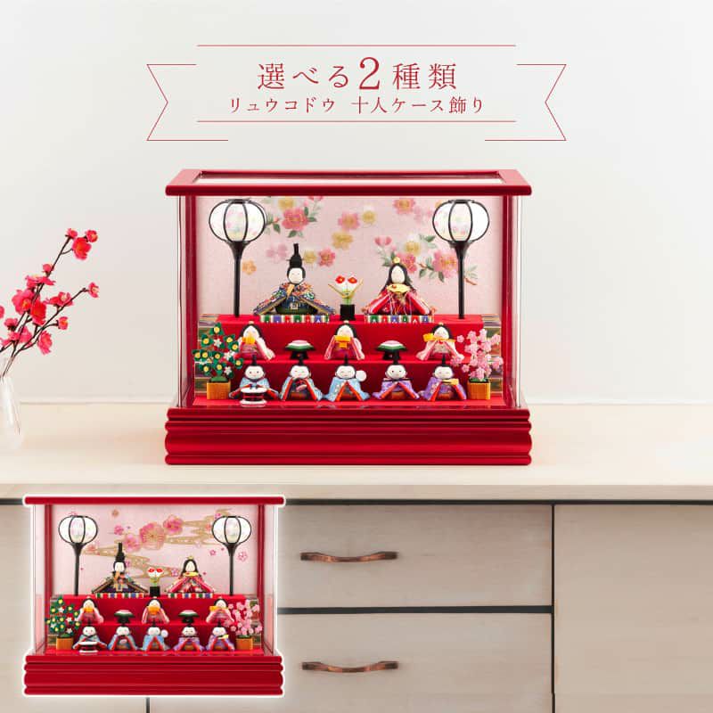 【送料無料】最安値に挑戦!2026年度新作 雛人形 雛人形 リュウコドウ ちりめん コンパクト ひな人形 雛 ケース飾り 十人飾り キャンディーレッド ラインストーン アクリルケース 【2026年度新作雛人形】【選べる2種類】 h073-rkcp-ca29-3-1-10