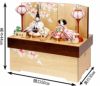 白木の明るい質感を活かした飾り台と屏風には、満開の桜が描かれ、おめでたい雰囲気あふれる仕上がりに。飾り台は、収納箱としてもお使いいただけ、お節句後には、お人形やお道具をしまう事ができ機能性にも優れています。
