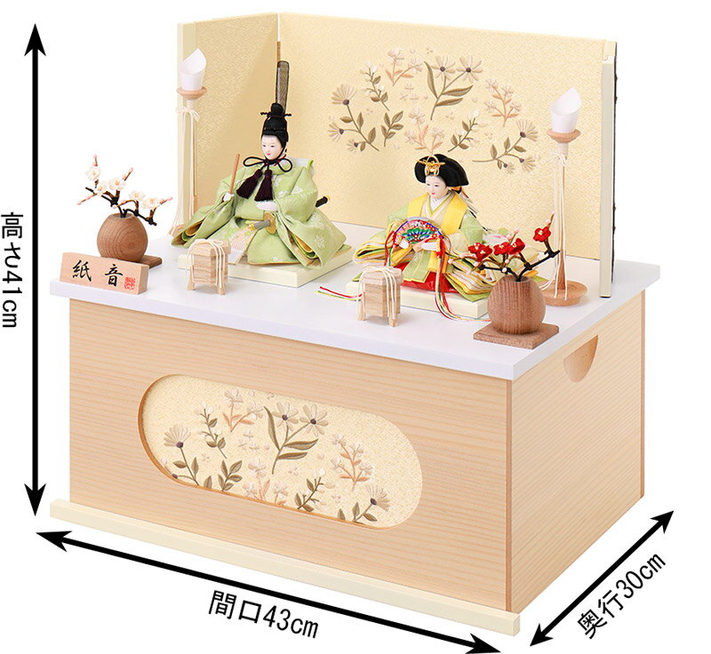 飾りやすいコンパクトなサイズが人気の「紙音」シリーズの親王収納飾りです。