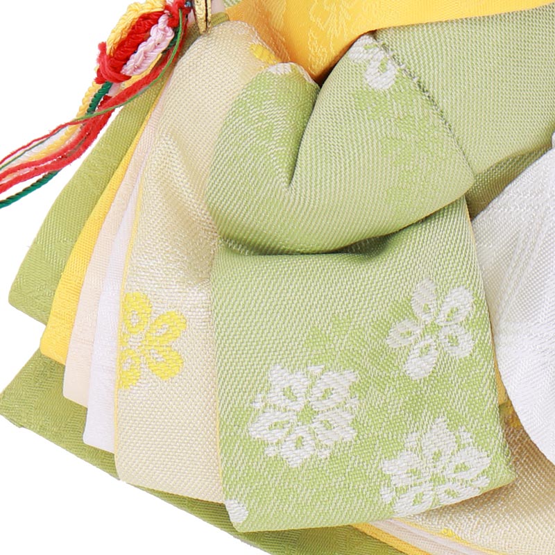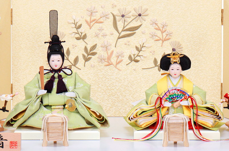 花文様の入ったお揃いの衣裳は、若草を思わせる晴れやかな色合いで、春のお節句にぴったりの仕上がりに。