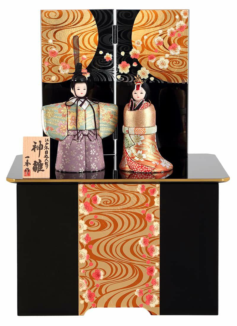 日本を代表する女流木目込み人形作家の第一人者、木村一秀作による立雛収納飾りです。
