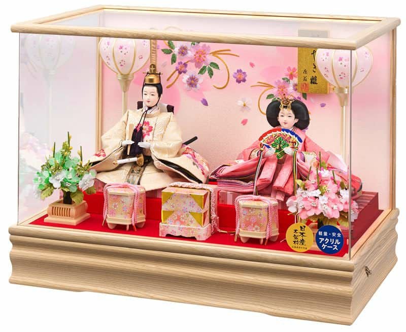 木目の美しい栓欅を使用した、やわらかな雰囲気の親王ケース飾りです。