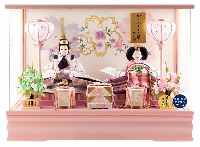 【送料無料】最安値に挑戦!2026年度新作 雛人形 雛人形 ひな人形 ケース飾り 親王飾り 藤翁作 羽衣 三五親王 桃 極上刺繍仕立 スワロフスキー アクリルケース オルゴール付 【2026年度新作】 h083-fn-263-249