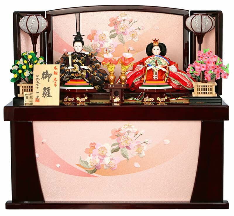 【送料無料】最安値に挑戦!2026年度新作 雛人形 雛人形 コンパクト ひな人形 雛 収納飾り 親王飾り 一晃作 木胴木手 ワイン色 りぼんに桜刺繍 【2026年度新作】 h293-ed-3n203