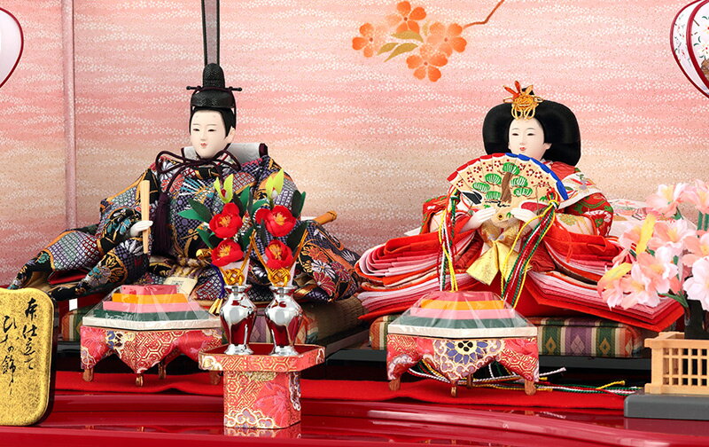 シンプルな作りの親王飾りですが、丸みを帯びたデザインと華やかな色彩が目を惹くおすすめの一品となっております。