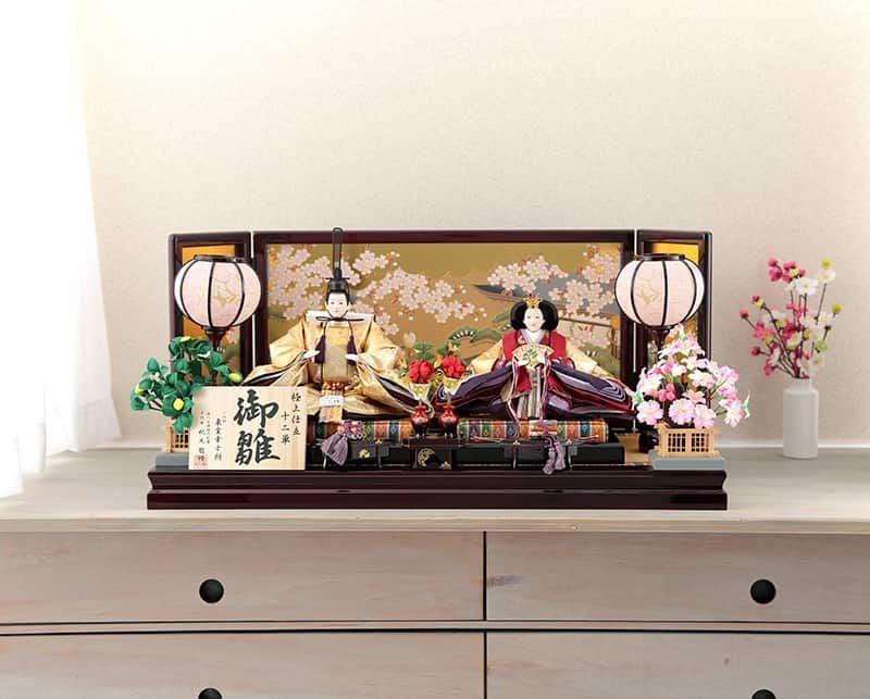 きらびやかな衣裳のお殿様とお姫様が印象的な親王平飾りです。