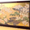 やわらかな光沢が美しい金色の佐賀錦の金襴衣裳を着せつけたお殿様とお姫様は、とても華やかな仕上がり。姫の衣裳は極上仕立の十二単でボリューム感があり、豪華です。