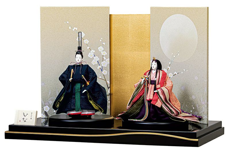 月に白梅の趣きのある台屏風も美しいですよ。上質で特別なお雛様をお探しの方に、ぜひおすすめします。