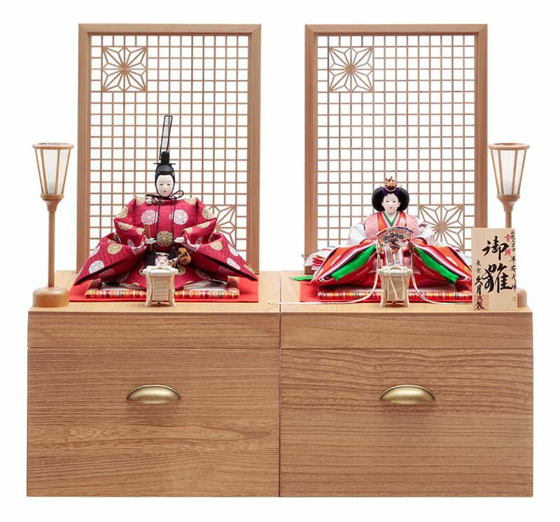 組子細工の衝立や家具調の飾り台など、素材感を生かしたモダンな仕上がりで、和洋を問わず色々なタイプのお部屋とよく調和する一式です。