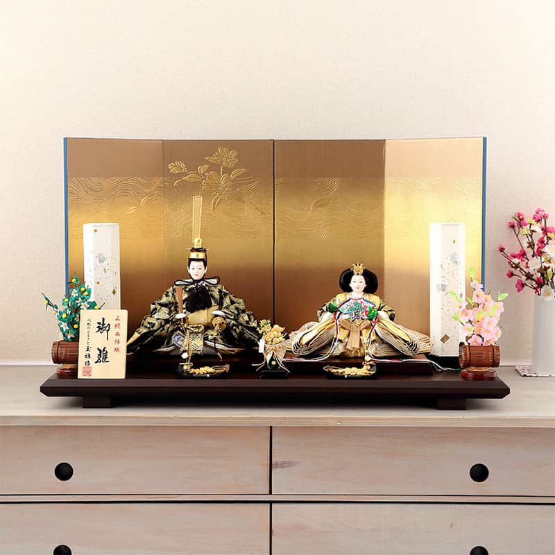 シンプルなテイストで縁起のよい流水のモチーフを屏風に配すなど、お節句にぴったりの一品です。