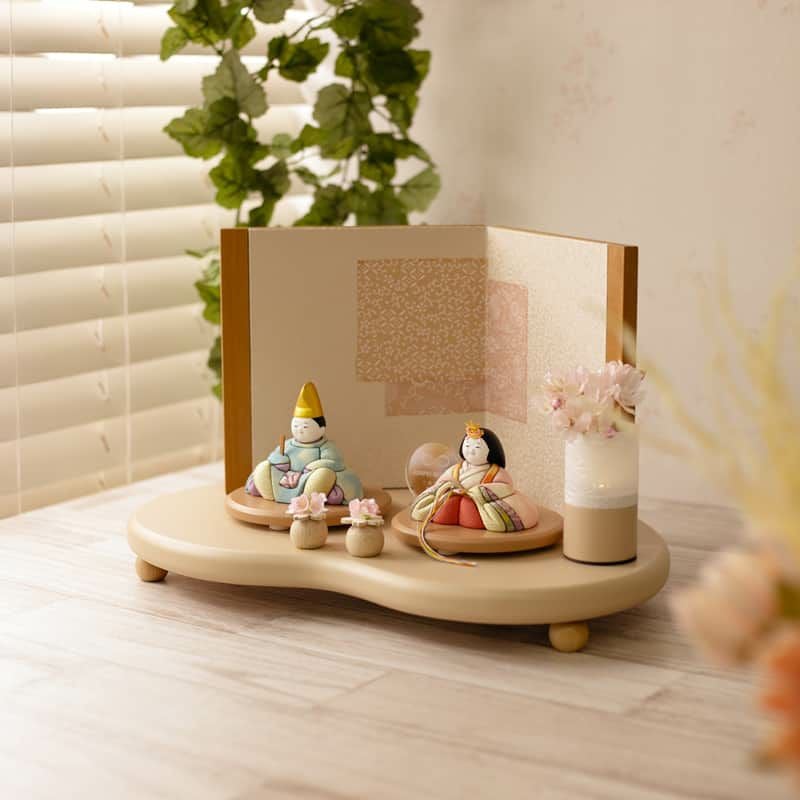 【送料無料】最安値に挑戦!2026年度新作 雛人形 雛人形 コンパクト 木目込み人形飾り 段飾り 親王飾り 角田勝俊作 ひなまり (TM) 木製道具 壁掛け式飾り台 【2026年度新作】【選べる6種類】 h043-n-hinamari-t2-1
