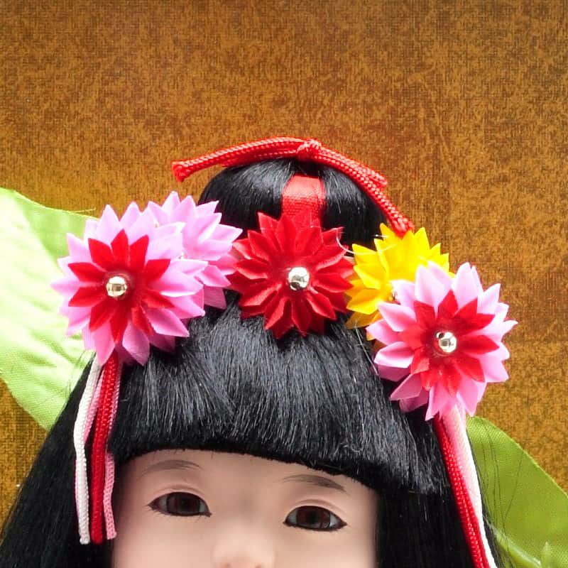 お人形はふっくらとした頬に、大きな瞳が愛らしいですね。