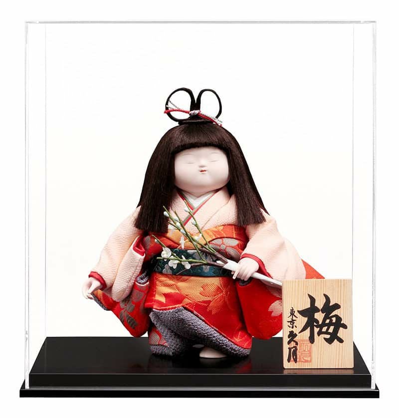 柱がないすっきりとした印象のアクリルケースで、いろいろな角度からお人形を見て楽しむことができます。