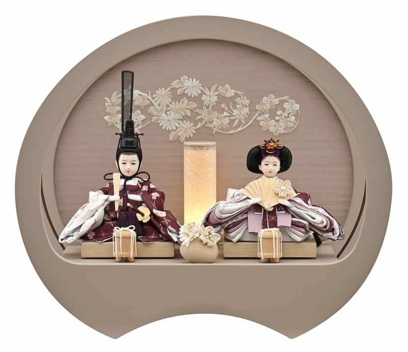 ころんとした形が人気の円形ケースに、小ぶりなお人形をあわせた親王ケース飾り「奏(かなで)」のご紹介です。
