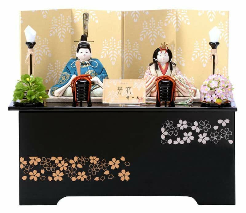 金銀で桜の蒔絵を施した会津塗の飾り台は、お節句の後に収納箱としてもお使いいただけます。