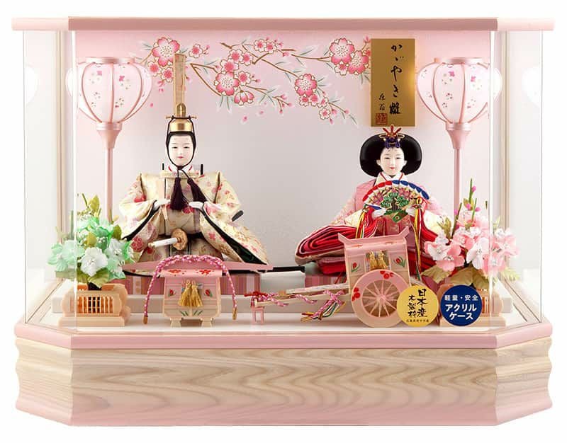 割れにくく軽量なアクリルケースを用いたお雛様ですので、小さなお子様も安心してお楽しみいただけます。