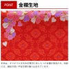 キラキラ光る糸を織り込んだ生地の地紋には、縁起の良い平安文様が織り込まれ、生地上部には桜花柄を華やかにあしらっています。