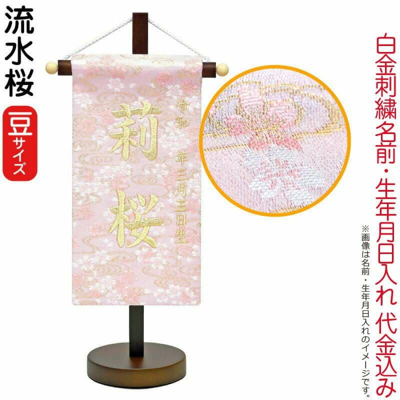 【送料無料】最安値に挑戦!2026年度新作 雛人形 雛人形 ひな人形 名前旗 女の子 流水桜(豆)シャンパンゴールド刺繍 生年月日 名前入代込 茶塗スタンド付 【2026年度新作】 3ad-ryusuis