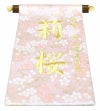 上品な色目で仕立てた金襴生地で仕立てたお名前旗「流水桜」です。