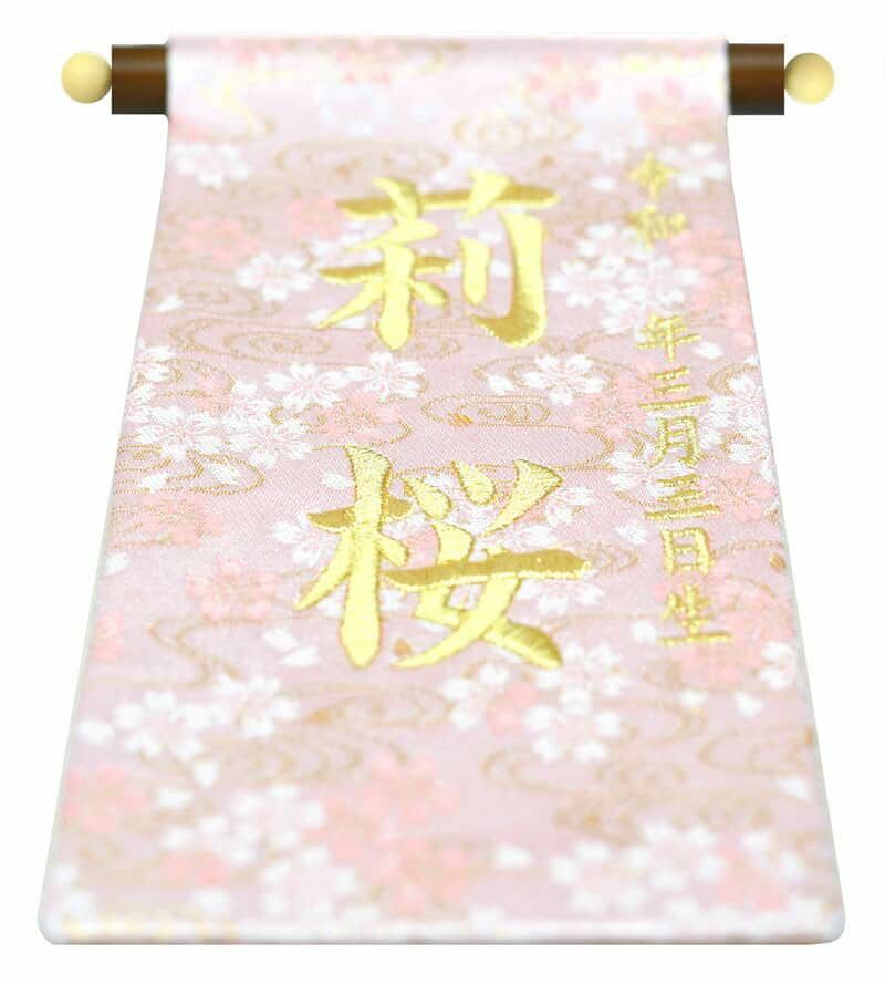 ケース飾りや親王飾りと共にお飾りいただくのにぴったりな、飾りやすいコンパクトサイズのお名前入りタペストリーです。