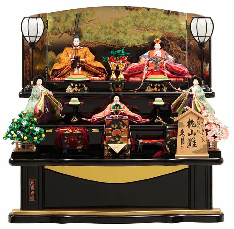 【送料無料】最安値に挑戦!2025年度新作 雛人形 雛人形 久月 ひな人形 雛 三段飾り 五人飾り 久月七代目当主監製 着付二世光匠 桃山雛 正絹有職 黄櫨染 京九番親王 五寸官女 【2025年度新作】 h073-k-35k-4