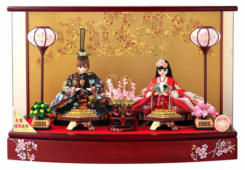 お雛さまの古典的な美しさと、リカちゃんのかわいらしさ、華やかさが見事に融合したケース飾りです。