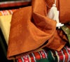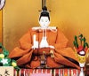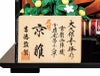 お殿様には、天皇陛下のみが着用される黄櫨染桐竹鳳凰文(こうろぜんきりたけほうおうもん)のを参考にした正絹衣装を、お姫様には雅な色合いの正絹衣装を着せ付けた本格的な装いのお雛様です。
