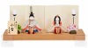 美しい木目と江戸からかみを用いた桐文様の屏風とが調和し、穏やかな表情のお人形をしっかりと引き立てています。