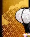 黒塗りに映える金屏風には、雲の中に七宝と麻の葉文様をあしらわれています。